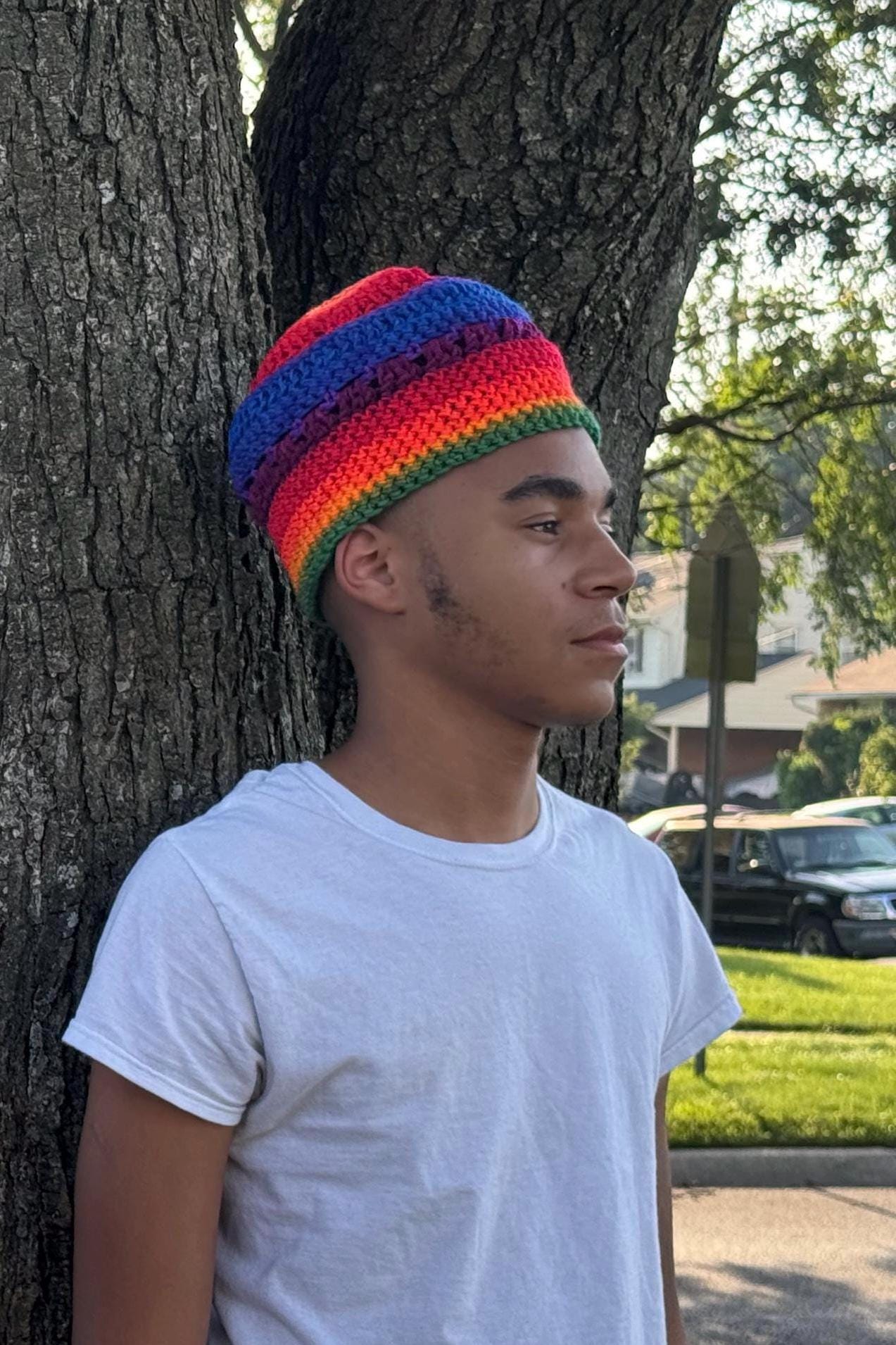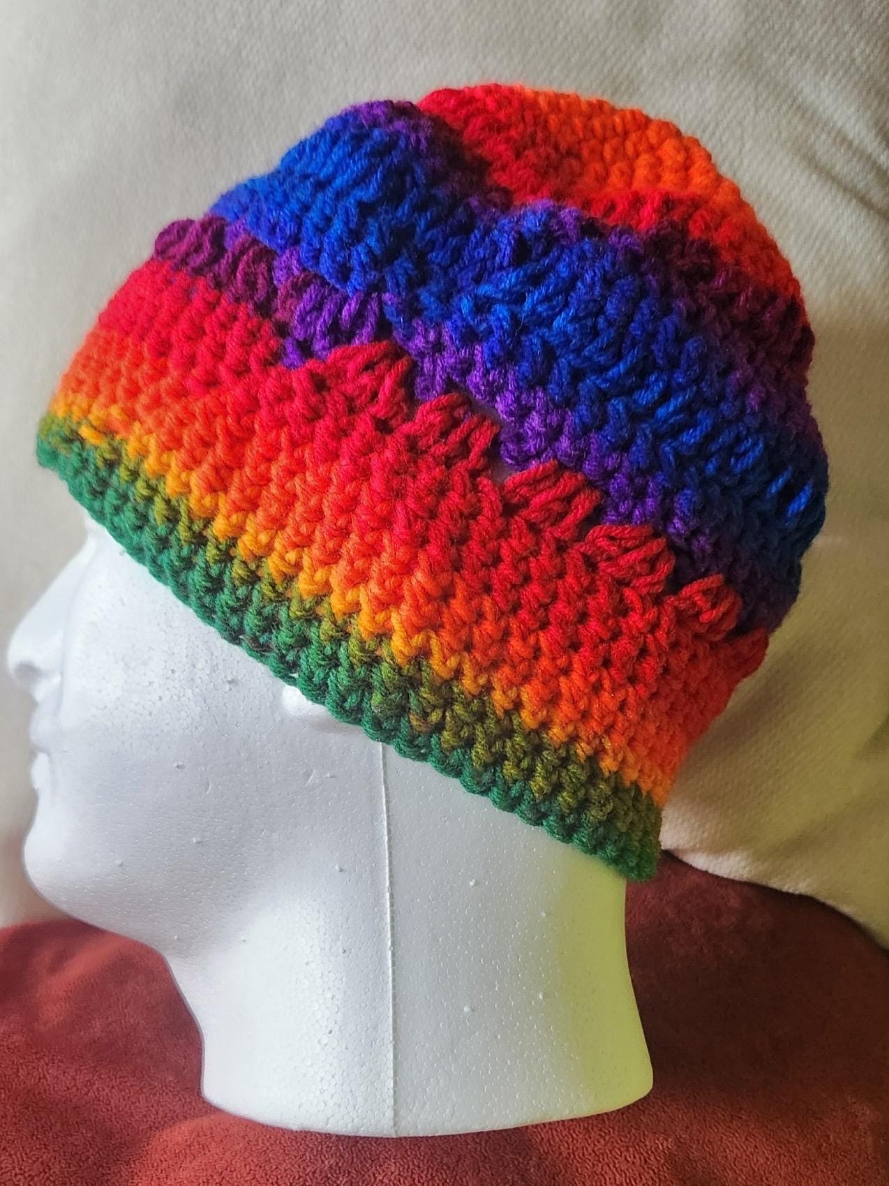 This eye-catching beanie is perfect for festivals, pride events, outdoor adventures, or as a unique gift for someone who loves color and handmade charm.