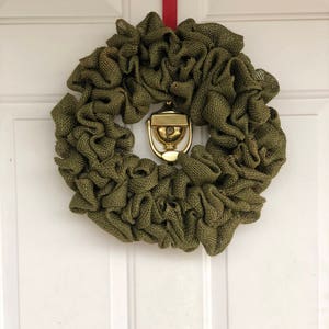 This classic burlap wreath is the perfect ornament for any door. It’s olive green color adds a sense of style without leaving simplicity behind and the monogram letter gives a personal touch.